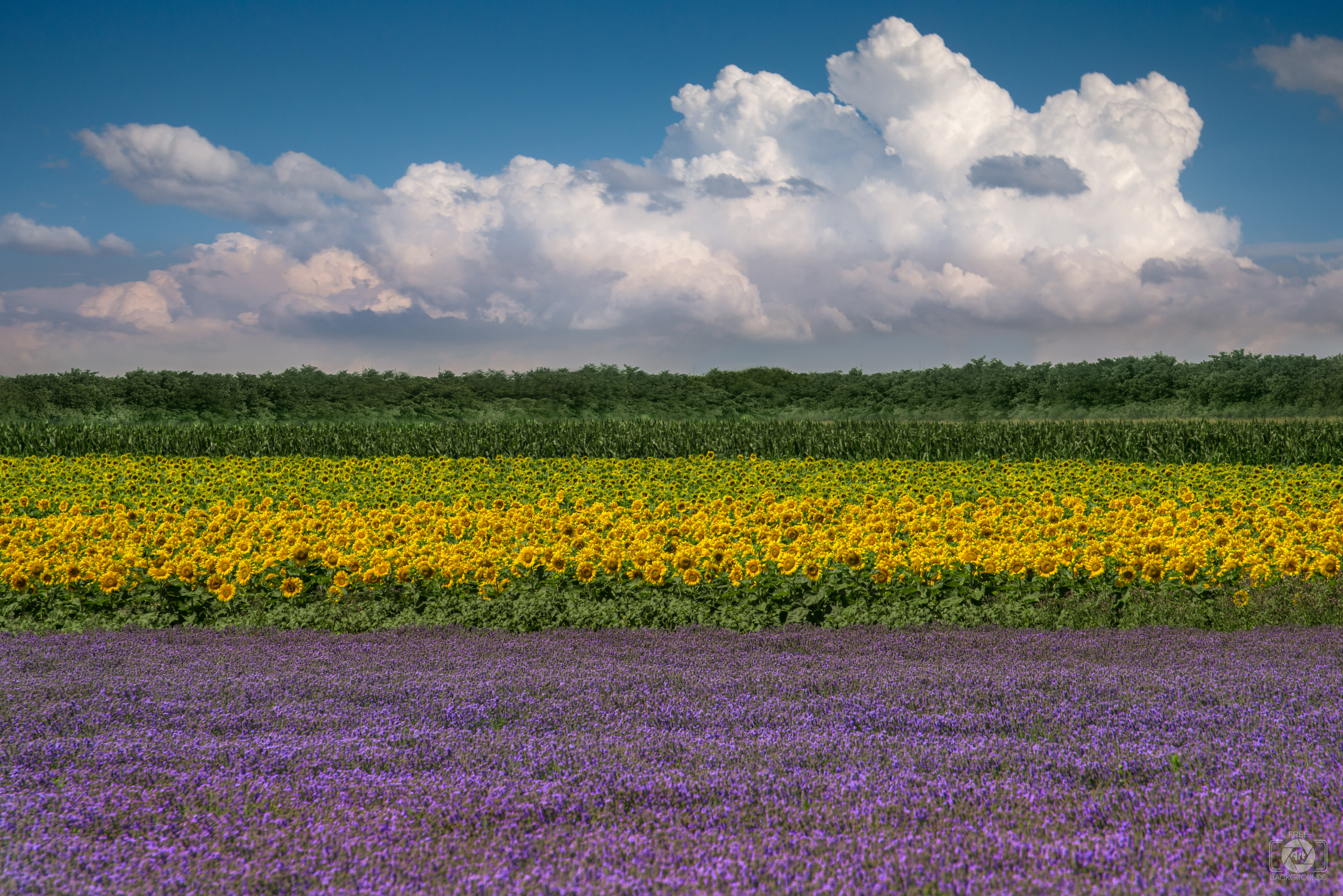 Image Resolution: 7158 x 4778 px.Image Link:https://pics.freeartbackgrounds.com/midle/Fields_with_Sunflowers_and_Lavender_Background-209.jpg