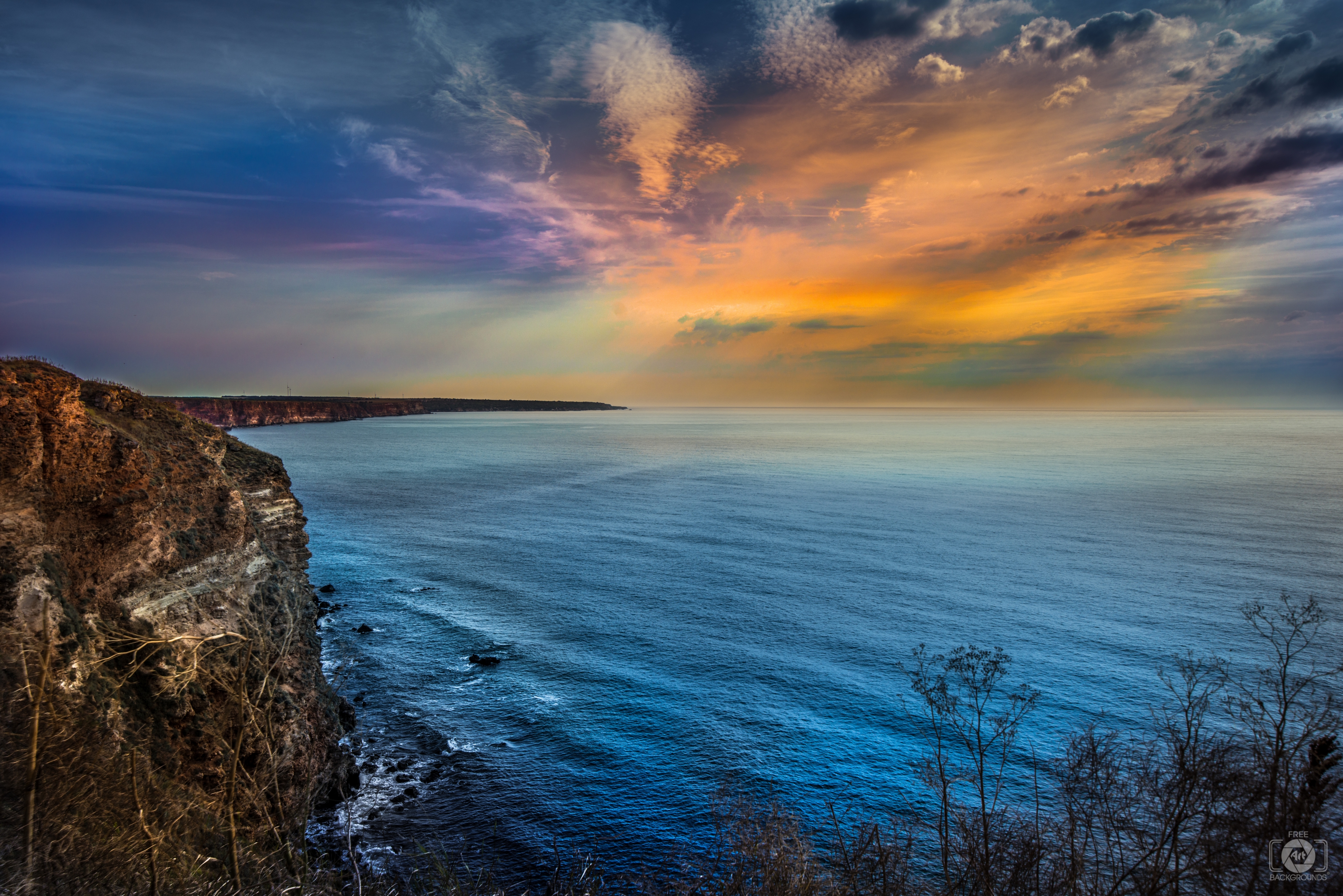 Image Resolution: 7050 x 4705 px.Image Link:https://pics.freeartbackgrounds.com/midle/Sea_View_of%20the_Rocky_Cliffs_Background-332.jpg