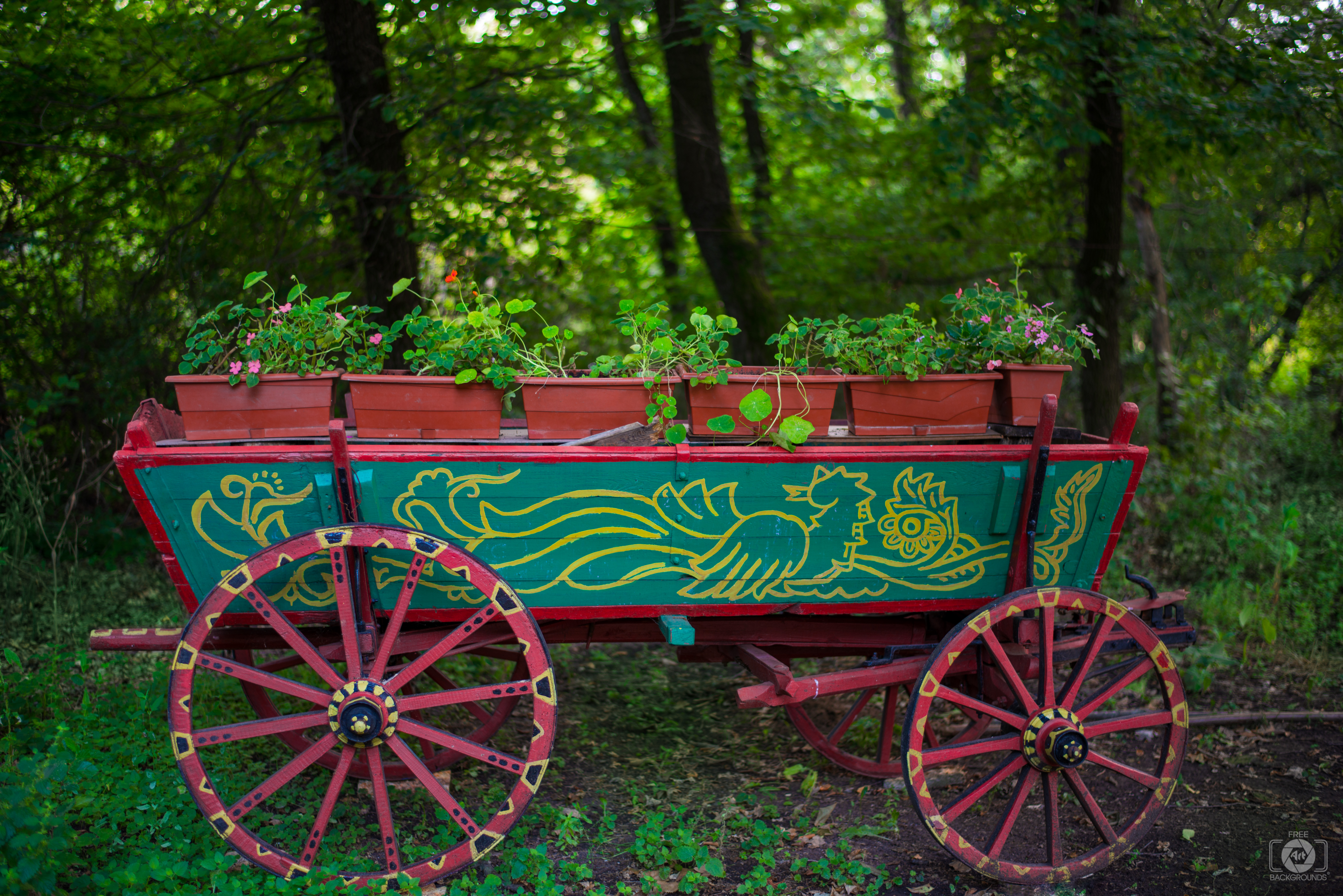 Image Resolution: 6756 x 4509 px.Image Link:https://pics.freeartbackgrounds.com/midle/Decorative_Cart_with_Flowers_Background-40.jpg