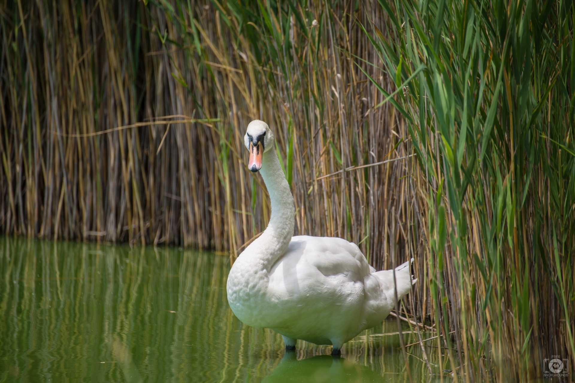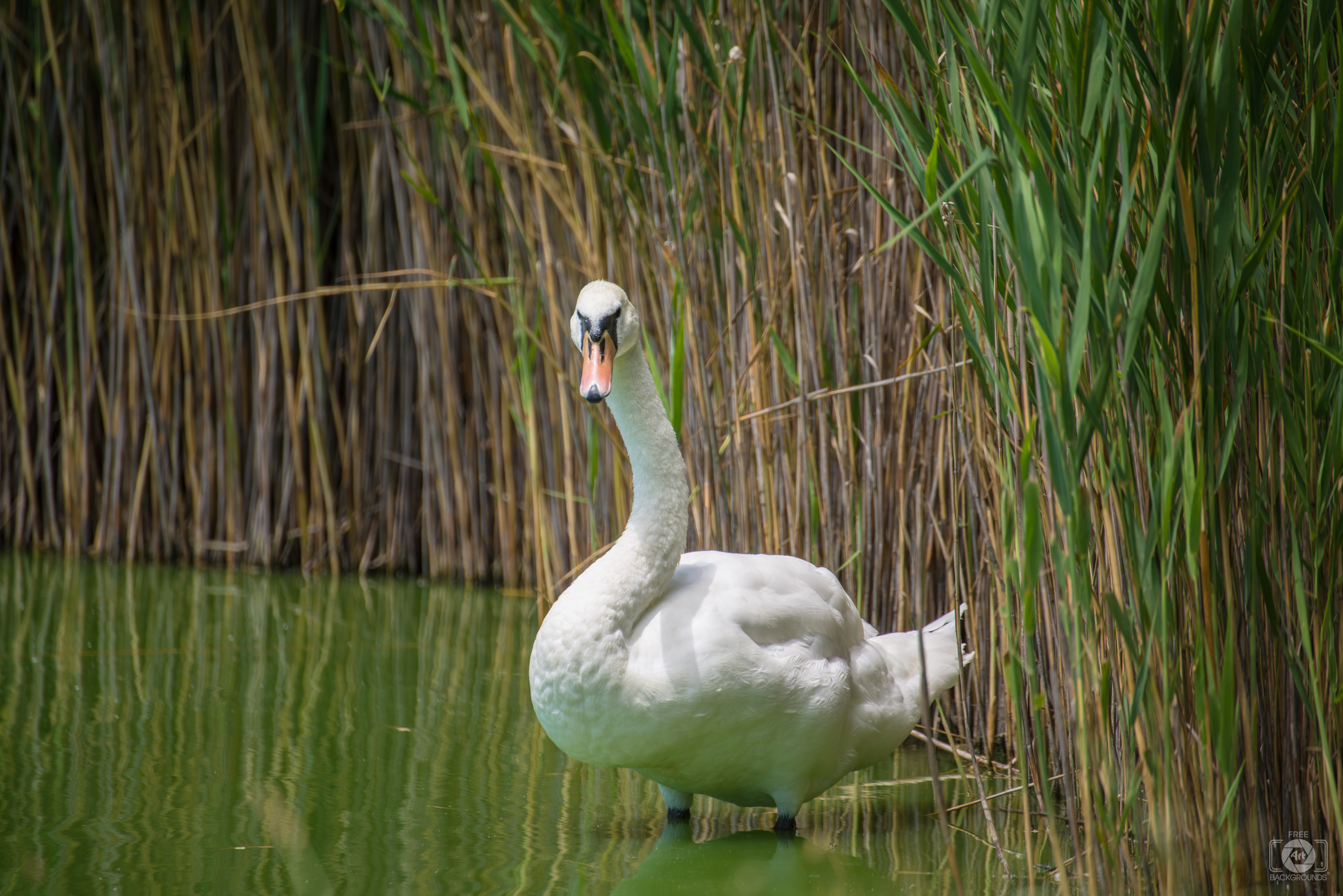 Full-Size Link:https://pics.freeartbackgrounds.com/Mute_Swan_in_Pond_Background-407.jpg
