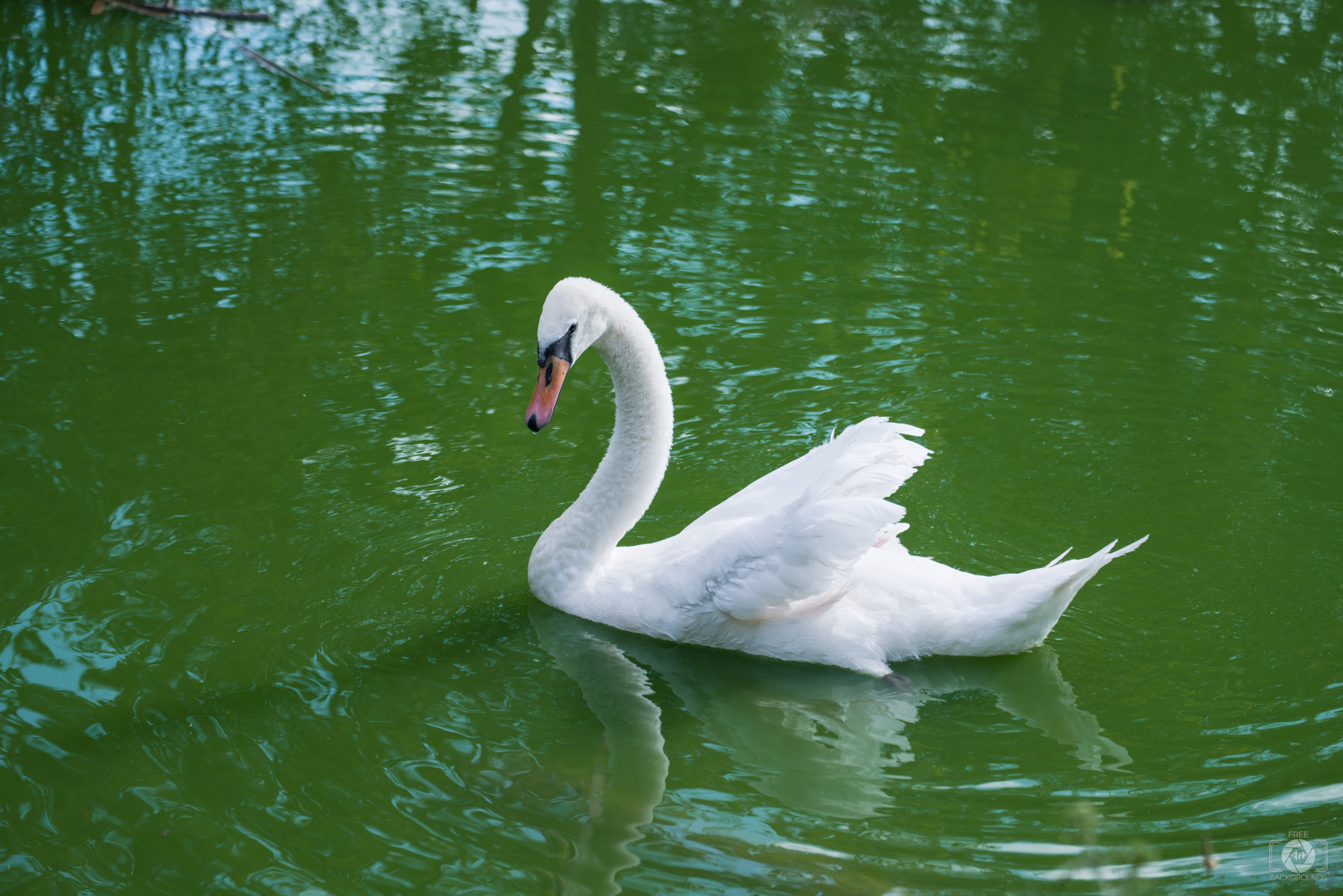 Image Resolution: 7360 x 4912 px.Image Link:https://pics.freeartbackgrounds.com/midle/White_Swan_Floating_on_Water_Background-500.jpg