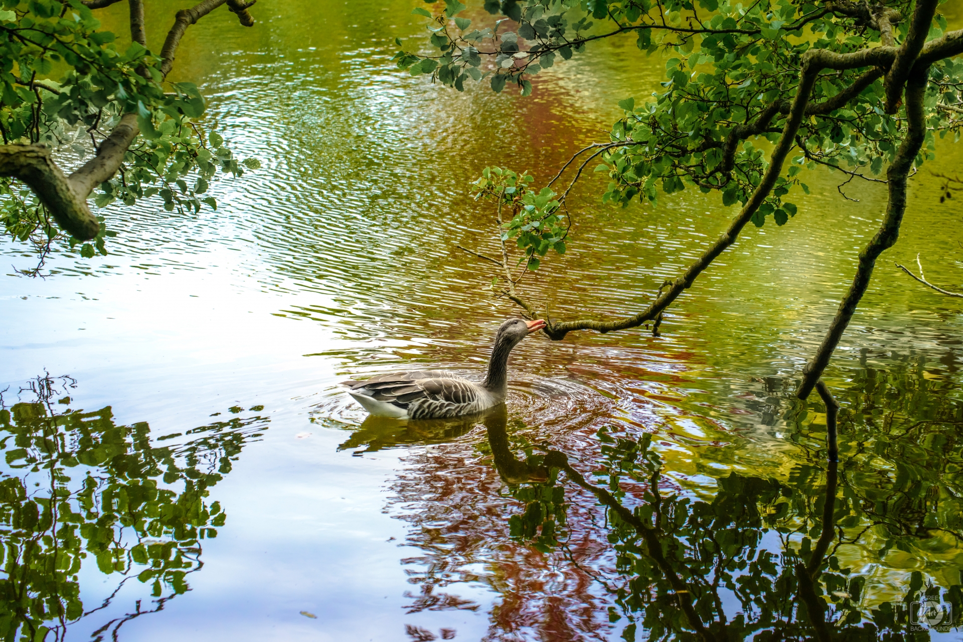 Image Resolution: 6919 x 4618 px.Image Link:https://pics.freeartbackgrounds.com/midle/Fall_Lake_Landscape_and_Goose_Background-529.jpg