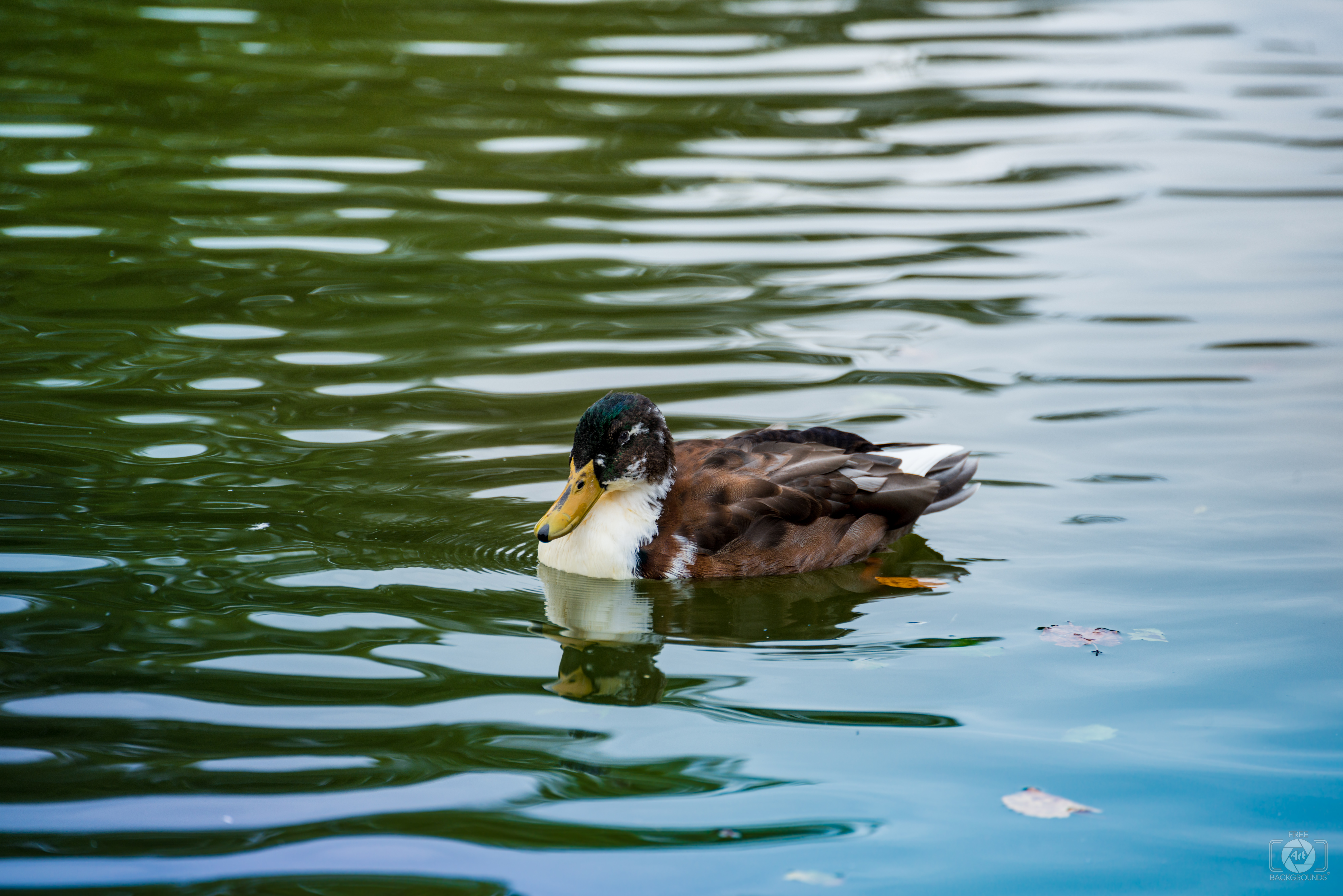 Image Resolution: 7360 x 4912 px.Image Link:https://pics.freeartbackgrounds.com/midle/White_Brown_Swimming_Duck_Background-590.jpg