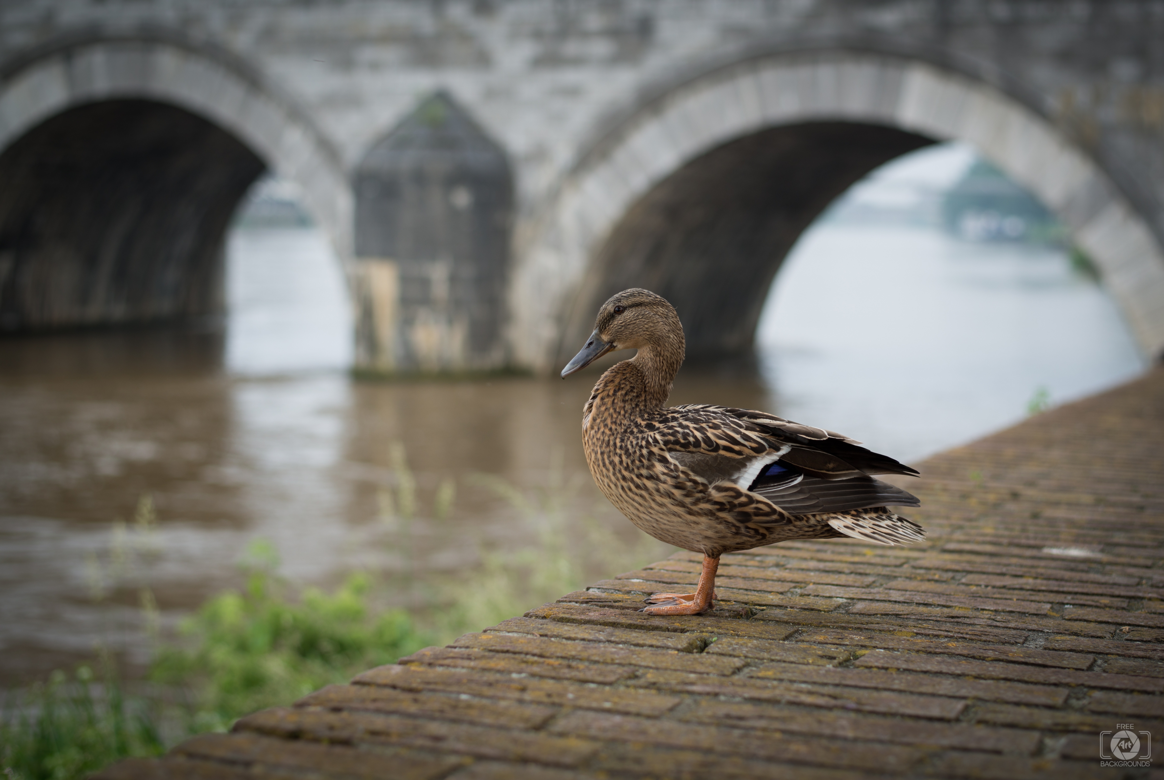 Image Resolution: 6525 x 4371 px.Image Link:https://pics.freeartbackgrounds.com/midle/Duck_Perched_Near_the_River_Background-60.jpg