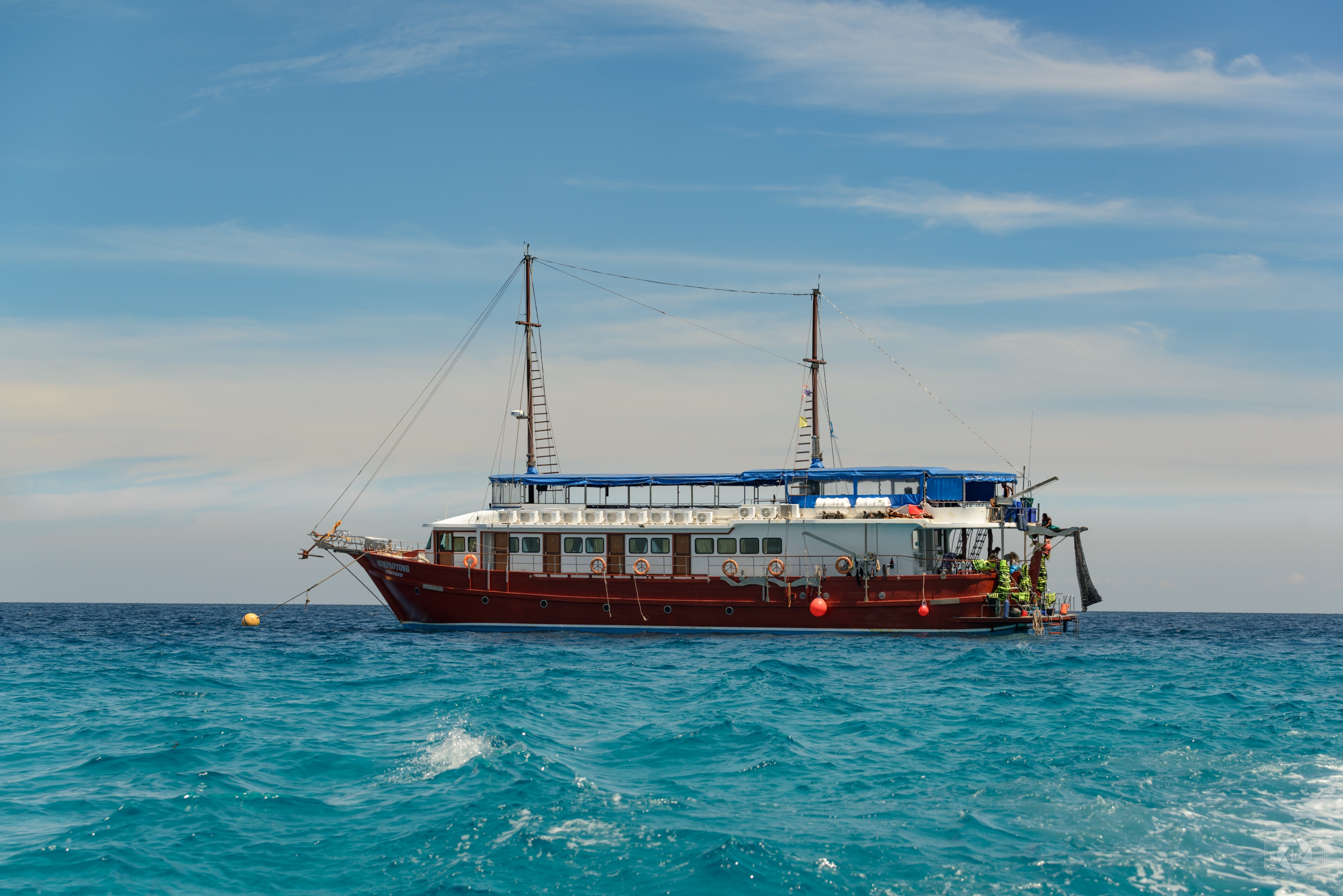 Image Resolution: 7360 x 4912 px.Image Link:https://pics.freeartbackgrounds.com/midle/Tourist_Boat_in_the_Sea_Background-778.jpg