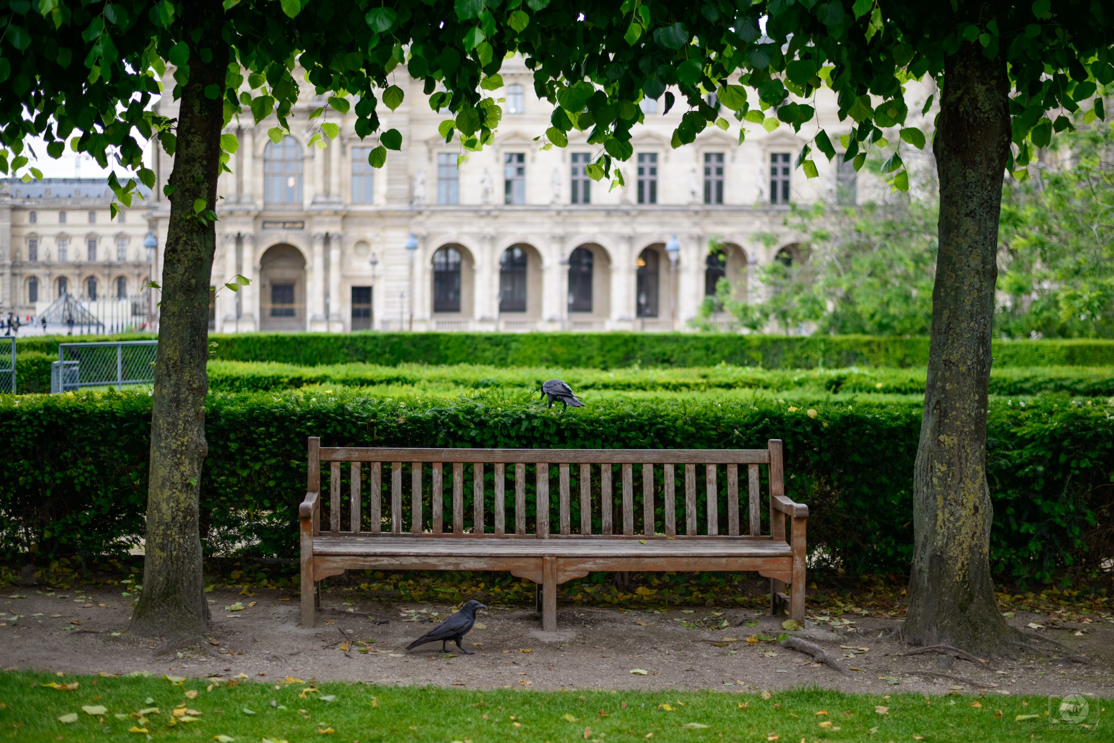 Image Resolution: 6952 x 4640 px.Image Link:https://pics.freeartbackgrounds.com/midle/Wooden_Park_Bench_and_Ravens_Background-934.jpg